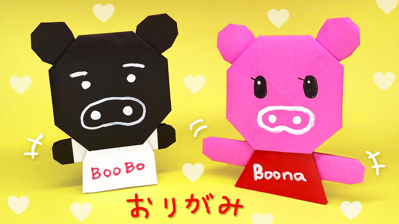 今回は折り紙でブーナちゃんとブーブちゃん